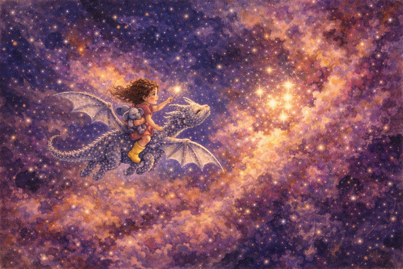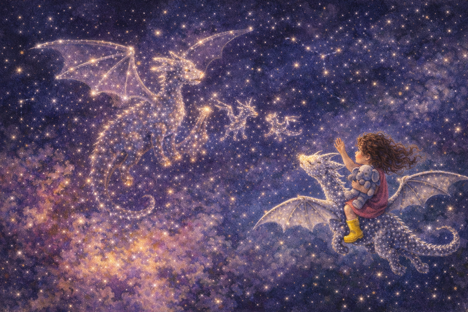 Biscuit's scales reflected every color. Zoe reached toward a newborn star, her eyes wide with wonder.
