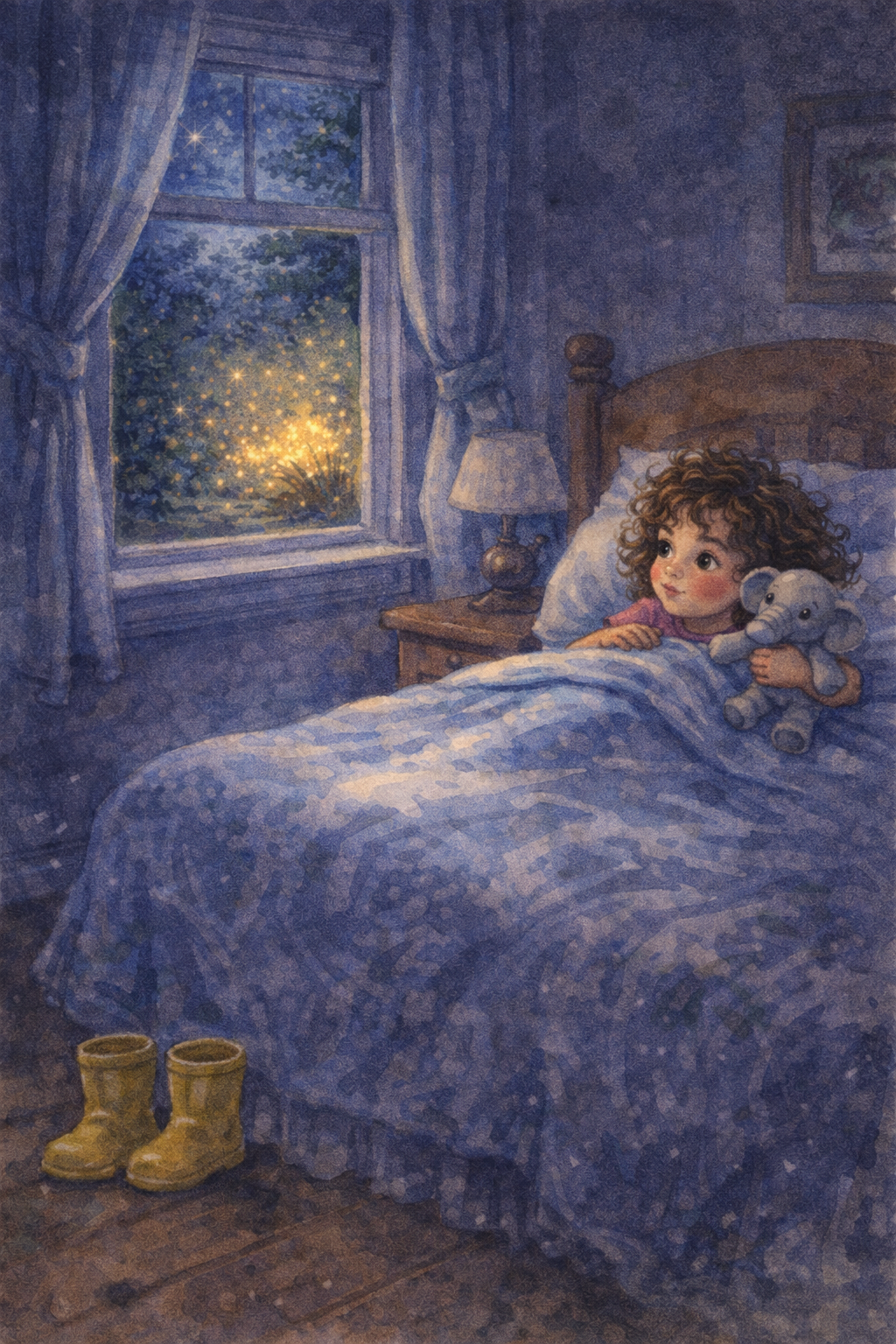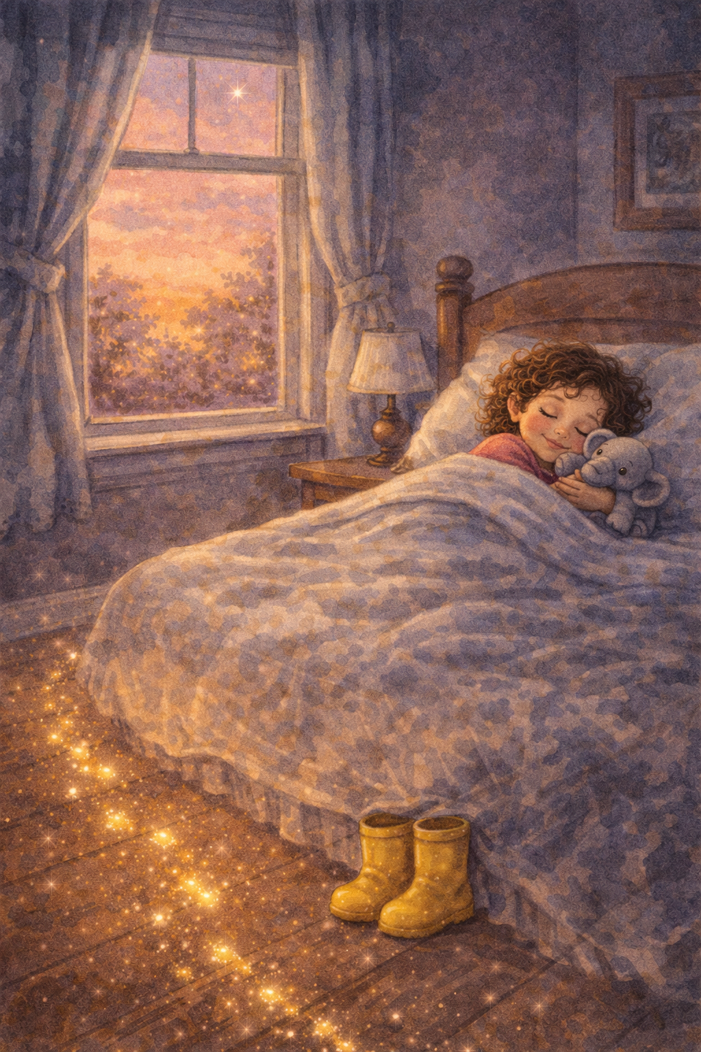 And on the wooden floor — a trail of tiny, glowing footprints led from the window to her bed.