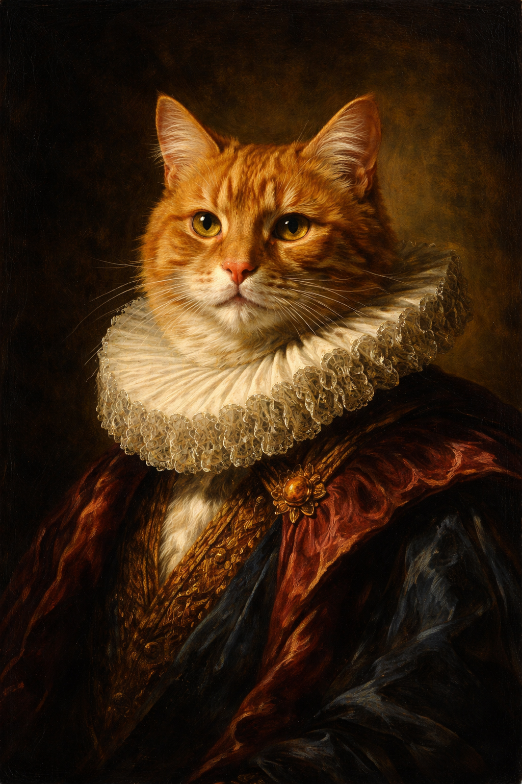 Paint my orange tabby in Renaissance style — he deserves the nobleman treatment